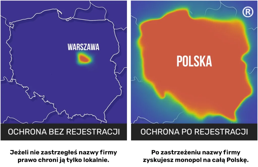 Tę niepewność prawną usuniesz zastrzegając nazwę firmy w Urzędzie Patentowym. Gwarantuje Ci to monopol na cały kraj. Przewrotnie powiem, że taka ochrona płatna jest tańsza od ochrony darmowej. Eliminujesz w ten sposób ryzyko sporów o markę. Żaden troll patentowy nie zgłosi na siebie Twojej nazwy firmy widząc, że już ją „opatentowałeś”. A to jest ostatnio coraz powszechniejszy sposób na kradzież praw do marki.